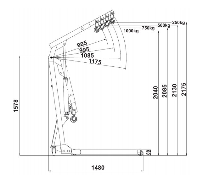 Værkstedskran Hydraulisk 1 ton